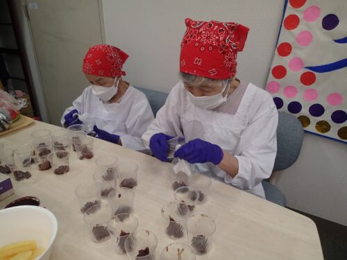 ☆個別のおやつ作りでは、シロクマプリンをお二人で作って頂きました。