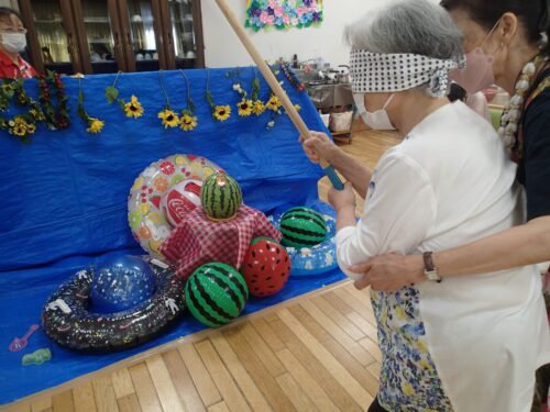 ☆恒例のスイカ割りを行いました!今回は、命中したのでしょうか(^▽^)/