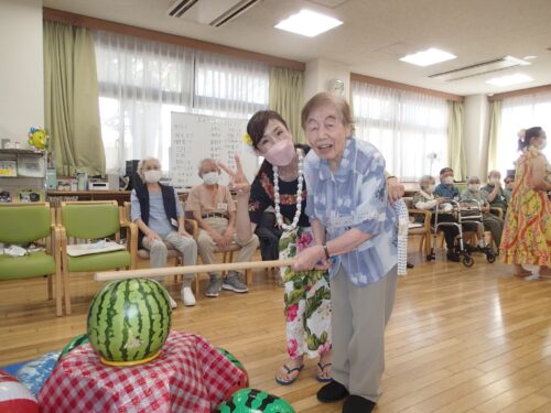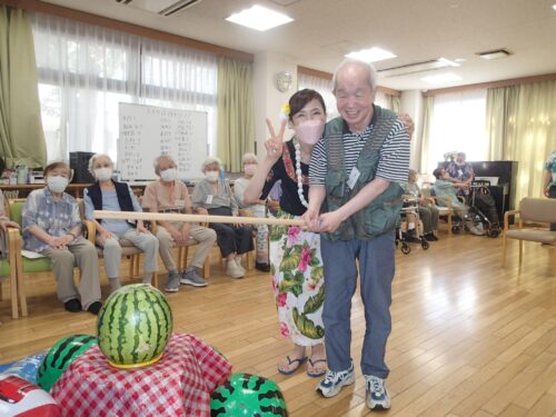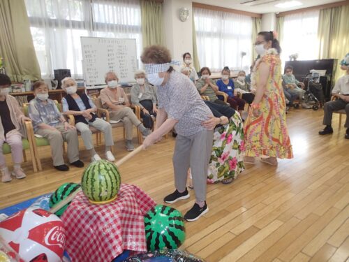 7月は、ブルーベリー狩りに行ったり、恒例のスイカ割りを行ったりして、楽しい時間を過ごしました。