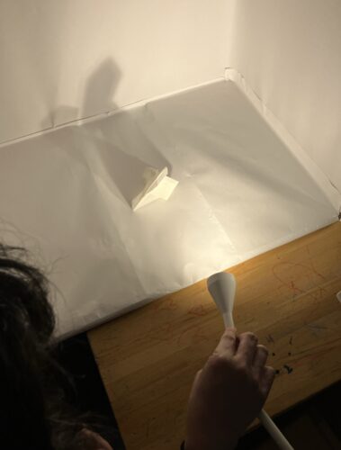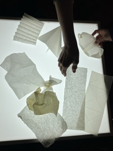 「折った紙を光にあててみたら、どのような関係性が生まれるでしょうか?」