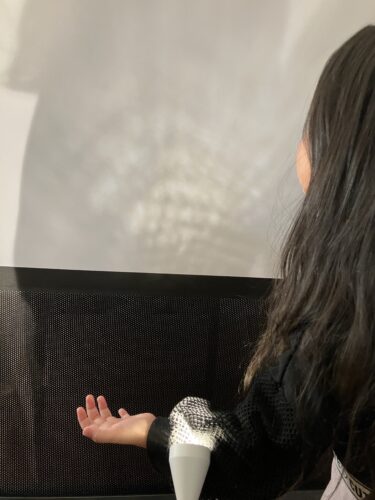 研修後は、その環境で子ども達も「探究」をしています。洋服の柄の影が映った面白さを発見!