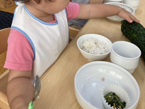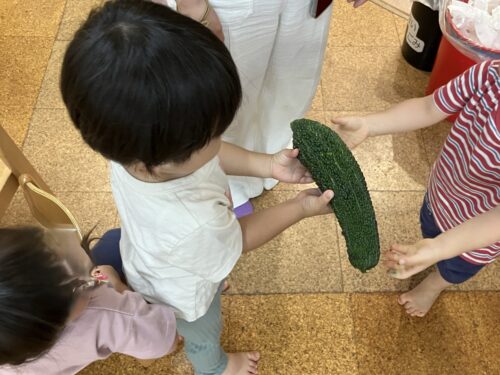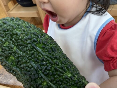 給食が始まっていた1歳児クラスにもゴーヤを見せることにすると…