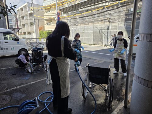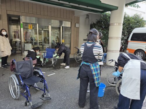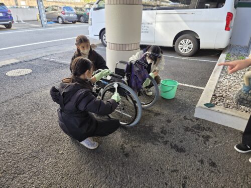 普連土学園の生徒の皆さんが、寒い中にもかかわらず奉仕活動に来てくださり、車いすの清掃を丁寧に行ってくださいました。