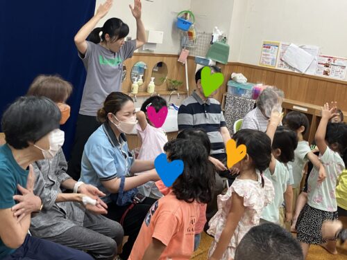 翌日の16日(火)、午前はデイホーム上馬の方々に保育園にお越し頂き、一緒に音楽を聴いたり手遊びをしたり…