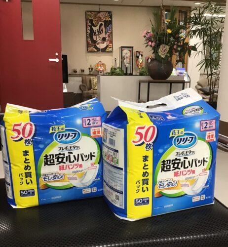 特別養護老人ホーム フレンズホームの入居者E様のお孫さんから紙パンツ用パッドの寄付をいただきました。